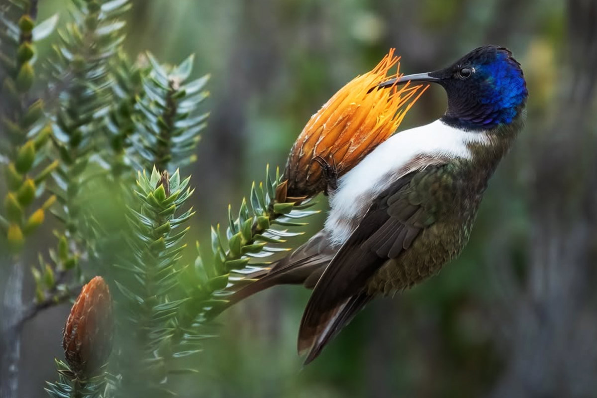 Bellavista é um verdadeiro paraíso para naturalistas e fotógrafos. As cachoeiras escondidas na vegetação, as trilhas envoltas em névoa e a exuberante flora subtropical criam cenários perfeitos para a fotografia de paisagens e da vida selvagem. Uma das maiores atrações visuais são os beija-flores. Dezenas deles pairam a poucos centímetros de nossas câmeras, pousando por breves segundos nos galhos cobertos de musgo que abundam ao redor do lodge. Outra espécie interessante que poderemos tentar nessa reserva é o Gallito de las Rocas Andino, uma espécie parecida com o Galo-da-Serra-do-Pará, encontrado na amazônia brasileira.