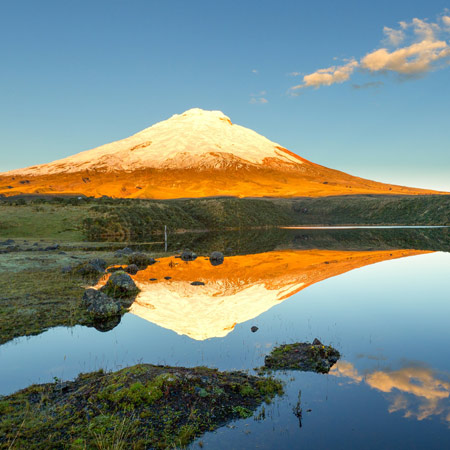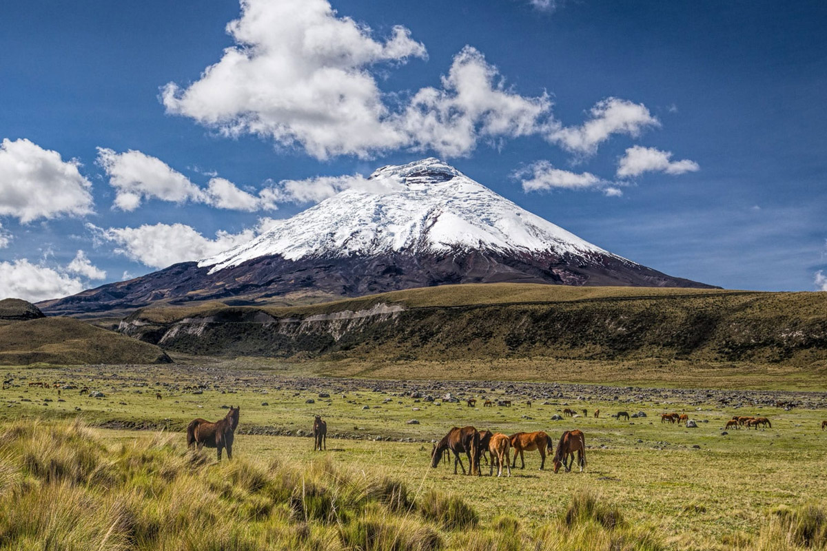 Chegaremos ao Parque Nacional Cotopaxi, localizado aos pés do imponente vulcão de mesmo nome, considerado o vulcão ativo mais alto do mundo, com 5.897 m. O parque, criado em 1979, abrange mais de 33.000 hectares de charneca, floresta tropical montanhosa, lagoas e geleiras, tudo emoldurado por picos como Rumiñahui, Quilindaña e Sincholagua. É um cenário ideal para a captura de imagens que transmitem a força e a beleza dos Andes.