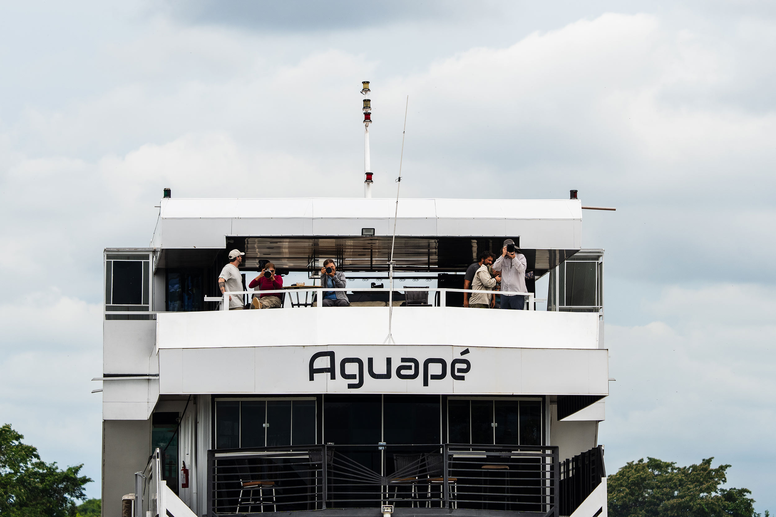 Já no Porto Jofre, ficaremos confortavelmente hospedados no barco-hotel Aguapé, uma embarcação para até 20 passageiros, com suites com ar condicionado e camas de casal ou solteiros, piscina, restaurante, bar, além da tripulação muito gentil e as lanchas rápidas (pontões) para navegarmos nos rios e corixos em busca da vida selvagem pantaneira.