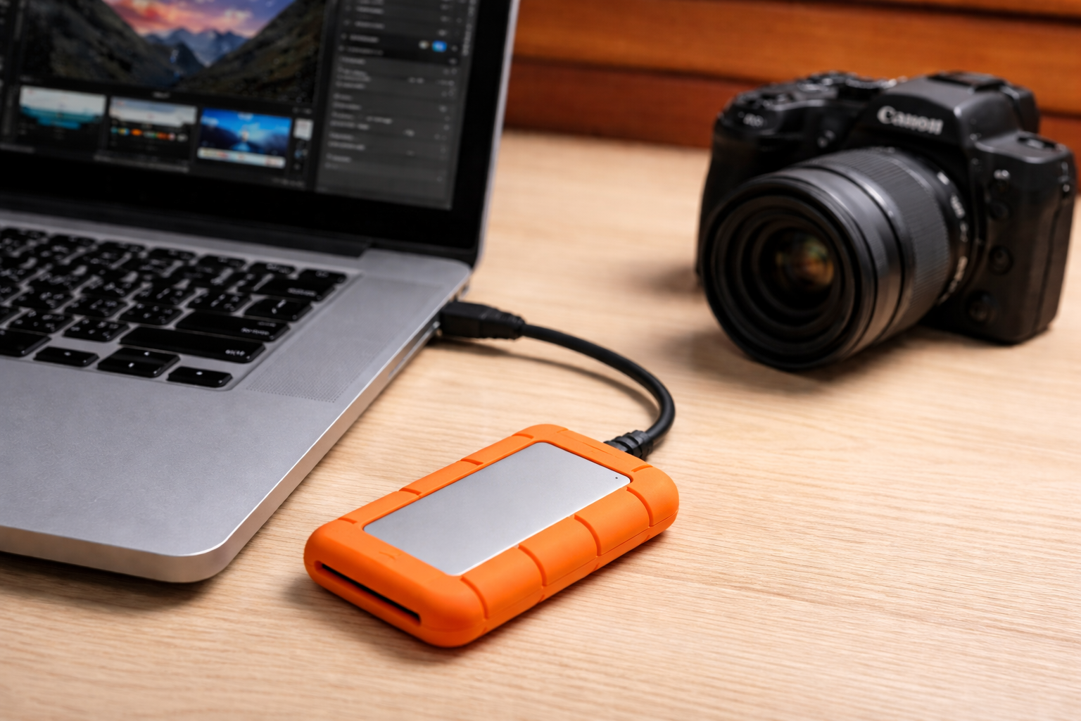 Em expedições fotográficas, cada cabo e cada volume contam. SSD portátil compacto facilita transporte, organização e manuseio noturno.