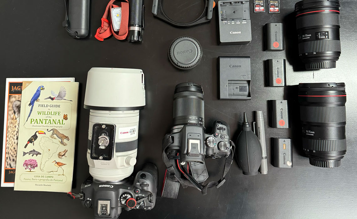 Converse com o líder da expedição fotográfica para entender as situações que poderão aparecer, e leve apenas as lentes que acredita que vá usar. Lembre-se, é você que vai carregar essas lentes na mochila, todos os dias.